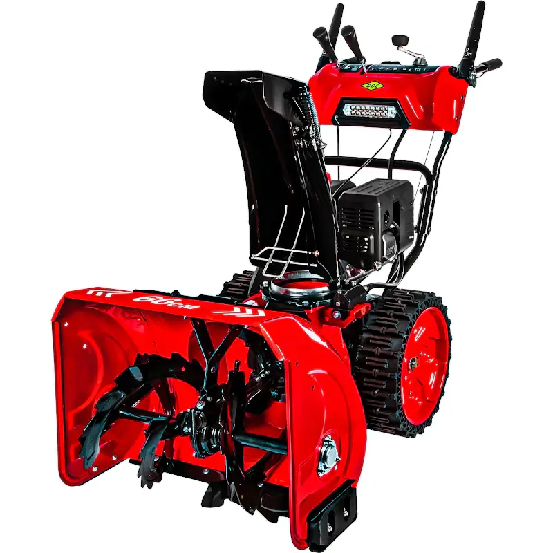 Самоходный бензиновый снегоуборщик прост и удобен в использовании. Его не нужно толкать перед собой, поэтому больших усилий для управления машиной не требуется. Двигатель можно завести вручную или с помощью электростартера, подключенного к сети 220 В.