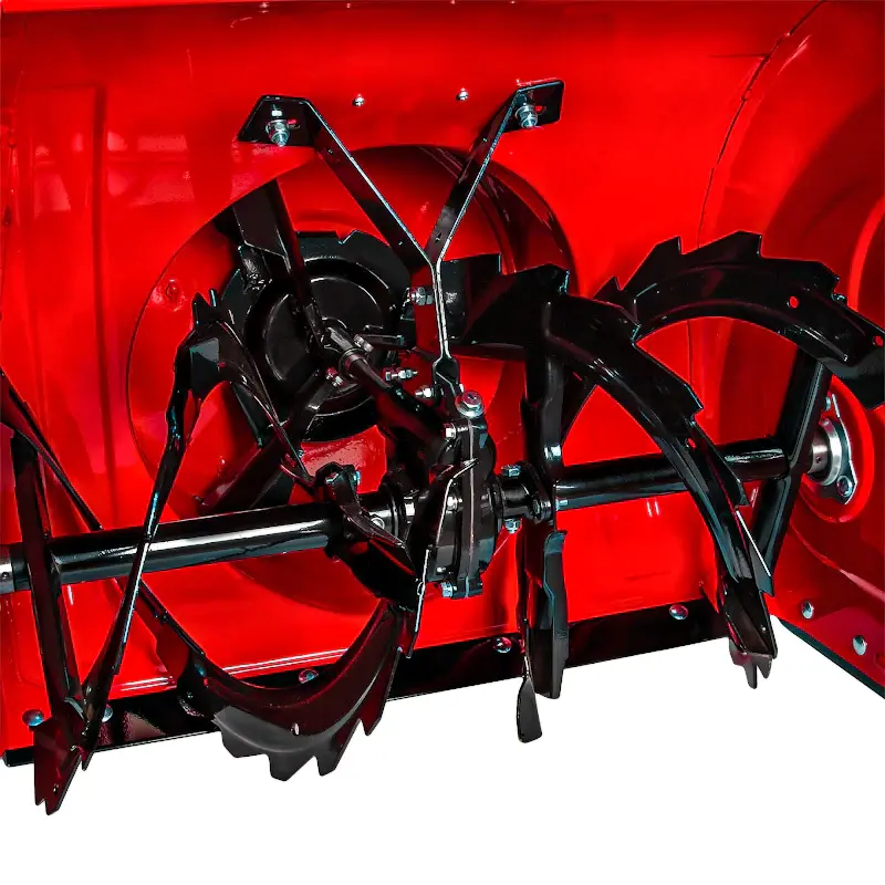 Прочный металлический шнек с зубьями эффективно загребает и перемалывает снег. Направление выброса регулируется рычагом на передней панели. Максимальная дальность составляет 11 м. Ограничить ее можно специальным дефлектором на желобе. Мощная фара улучшает видимость при недостатке освещения.