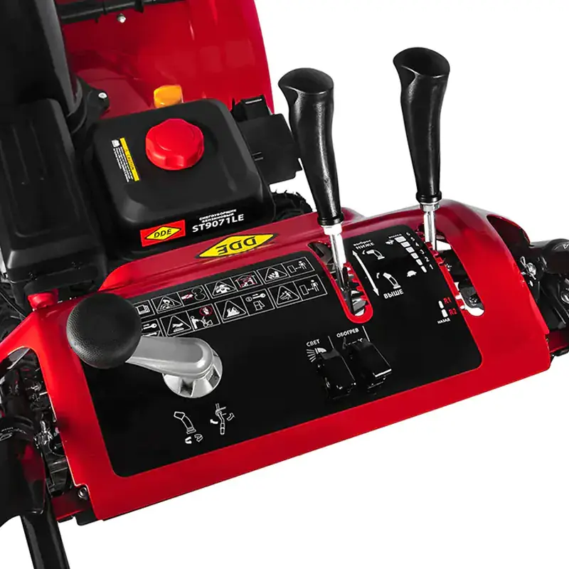 Снегоуборщик DDE ST9071LE имеет самоходную конструкцию и легко управляется одной рукой благодаря системе Free Hand Control. Машина имеет 6 скоростей вперед и две назад, а также поддерживает разблокировку дифференциала, что обеспечивает высокую маневренность в любых условиях.