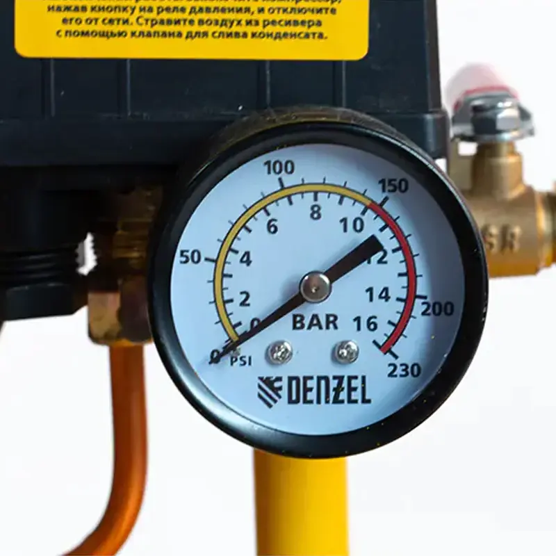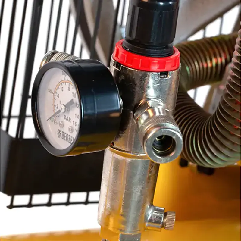 - Легко отслеживать давление в ресивере и в пневмолинии благодаря двум манометрам.