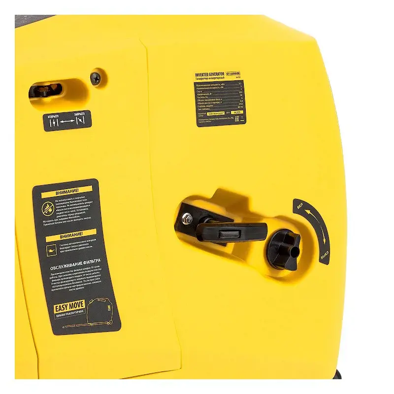 В генераторе есть встроенная система защиты от перегрузки и короткого замыкания. При возникновении аварийной ситуации происходит автоматическая остановка работы, что предотвращает поломку модели. Тоже самое происходит и при низком уровне масла в бачке.