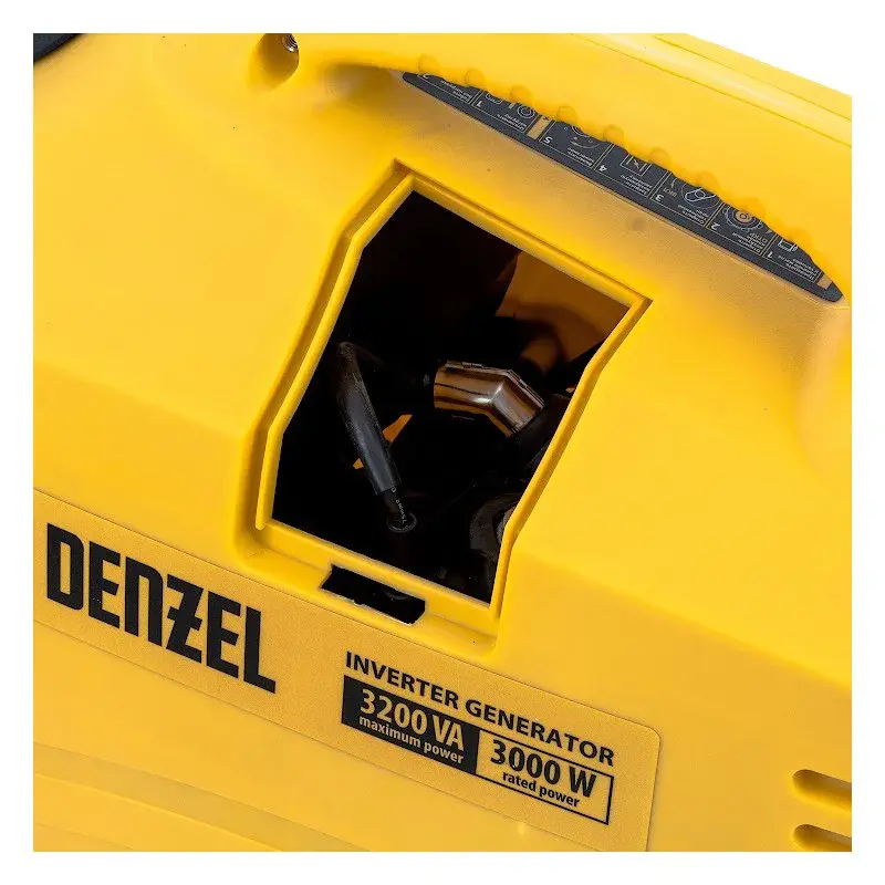 Инверторный генератор Denzel GT-3200iSE позволяет питать подключенное оборудование суммарной мощностью до 3 кВт. Модель оснащена колесами и выдвижной ручкой для простого перемещения по рабочей площадке.