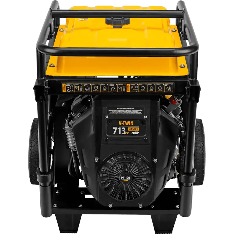 - Мобильность — колеса и ручки упрощают перемещение генератора по рабочей площадке.