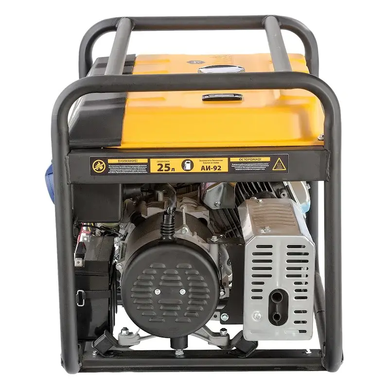 Бензиновый генератор используется для питания одного или нескольких потребителей сразу, чья суммарная мощность не превышает 5 кВт. На корпусе расположено 3 розетки на 230 В. Две на 16 А и одна силовая на 32 А.