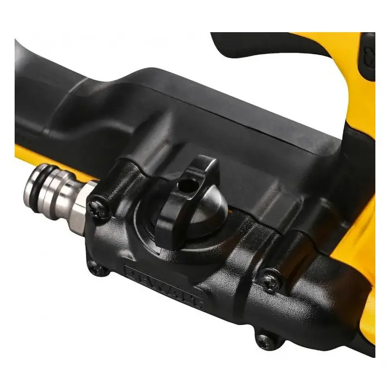 К штуцеру на корпусе резчика DeWalt DCS690N можно подключить водяной шланг. Вода подается непосредственно на диск и охлаждает его во время пиления. Водяное охлаждение повышает рабочий ресурс и производительность инструмента.