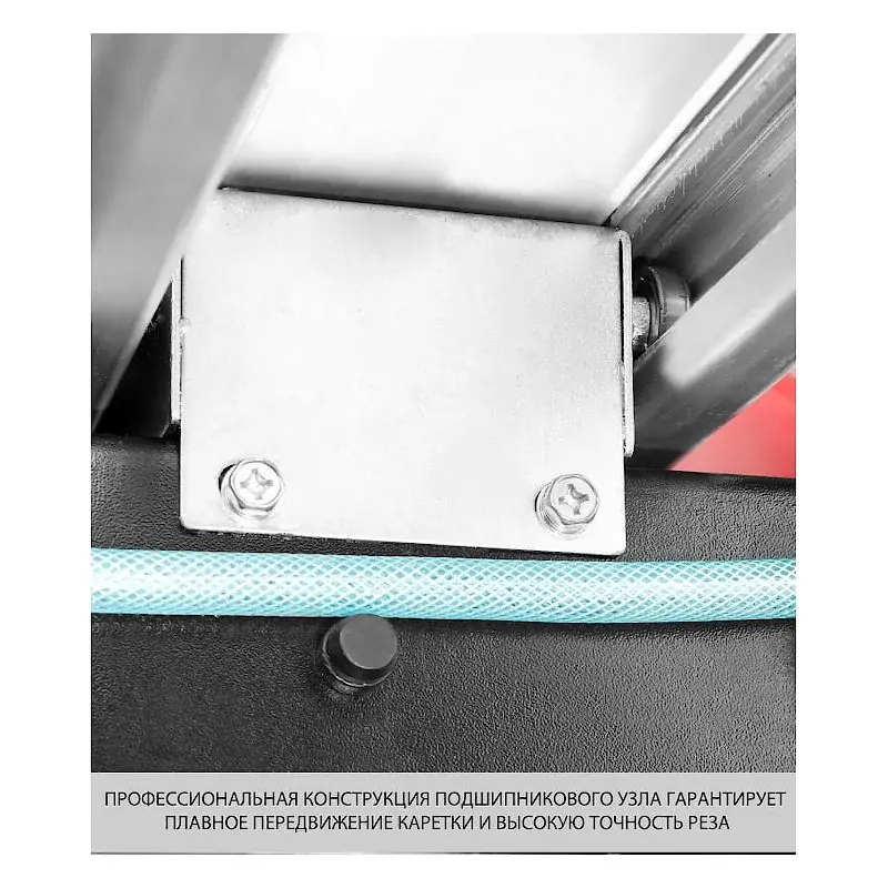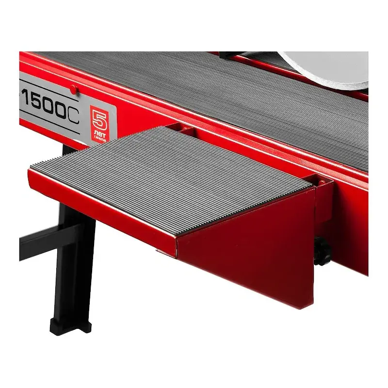 Алмазный диск диаметром 300 мм позволяет резать материалы на глубину до 40 мм под углом 45° и до 65 мм под углом 90°. Длина пропила составляет 1200 мм, благодаря чему вы можете обрабатывать большие плитки, включая тротуарные и облицовочные.