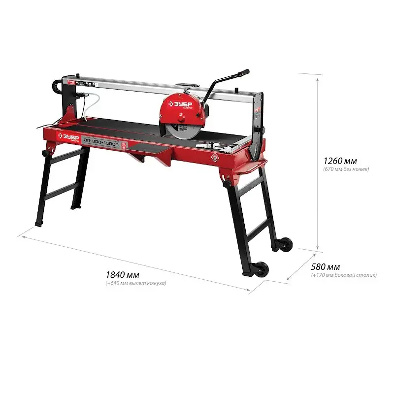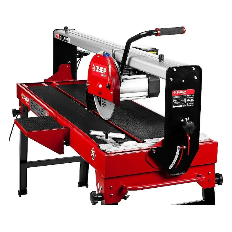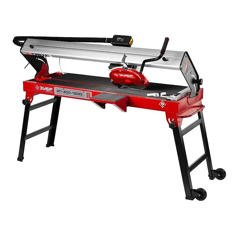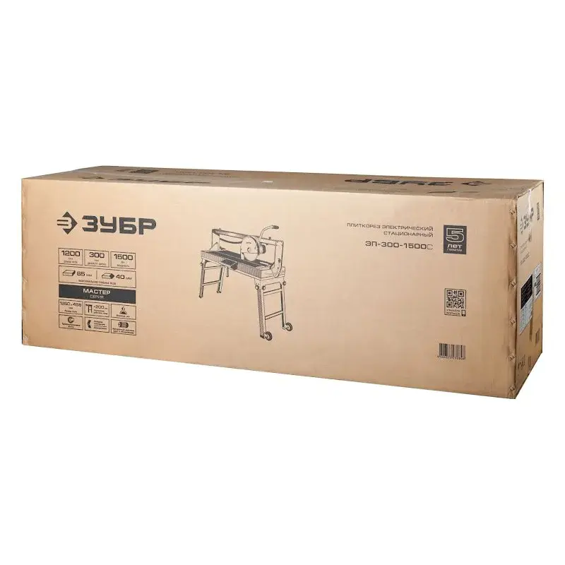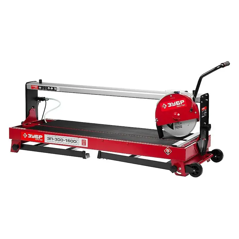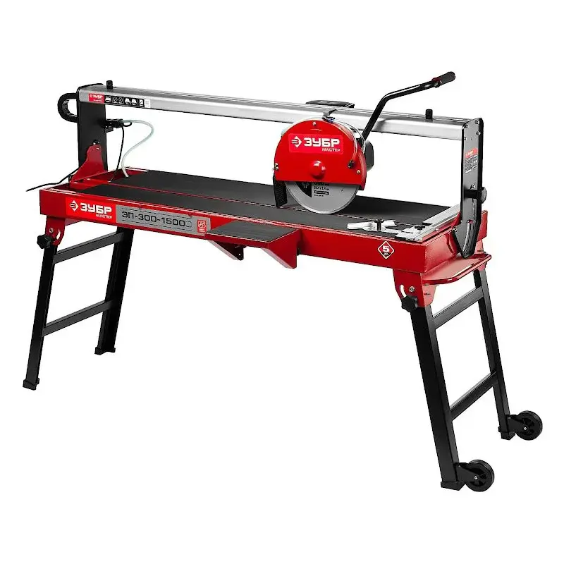 Плиткорез Зубр ЭП-300-1500С обеспечивает чистую обработку керамики и натурального камня за счет асинхронного двигателя мощностью 1500 Вт. Инструмент установлен на станину для удобства использования, а также совместим с баком водяного охлаждения.