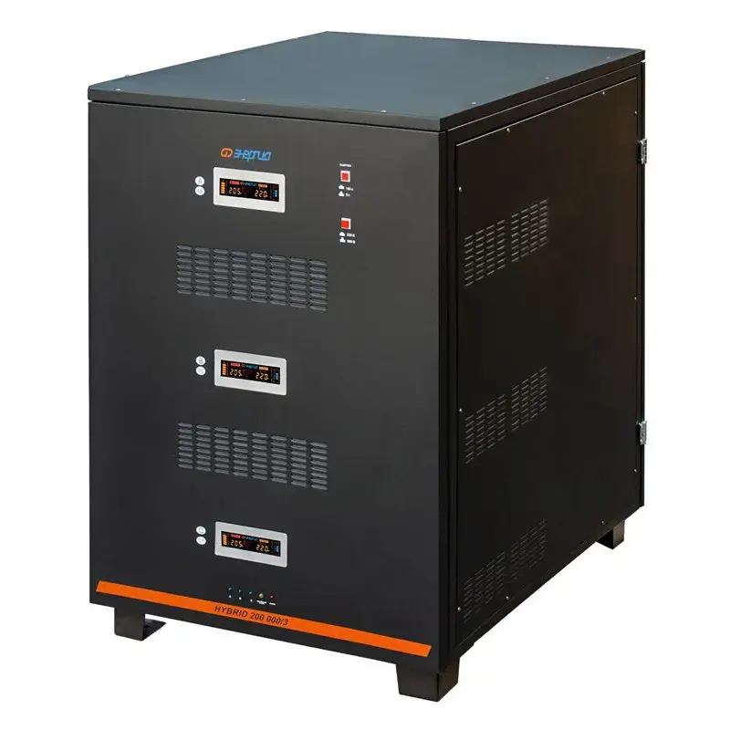 Принцип работы стабилизаторов серии Hybrid II поколения – комбинированный (электромеханический и релейный). Трехфазные стабилизаторы Hybrid отличаются высокой точностью, поскольку плавная регулировка позволяет добиться минимальных отклонений выходного напряжения от эталонного, а установленные реле обеспечивают высокую скорость регулировки и расширяют рабочий диапазон входного напряжения.