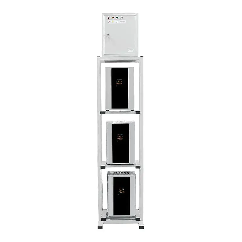 Трехфазный стабилизатор напряжения СНВТ ЭНЕРГИЯ HYBRID предназначен для стабилизации переменного напряжения в сети электроснабжения для потребителей общепромышленного, бытового и аналогичного назначения. Изделие относится к классу автотрансформаторных стабилизаторов со смешанным релейно-сервоприводным регулированием с помощью электромеханических реле и сервомотора. Изделие соответствует требованиям российских и международных стандартов. Технические условия и нормативная база на изделие устанавливаются стандартом предприятия SCT/008-2009.