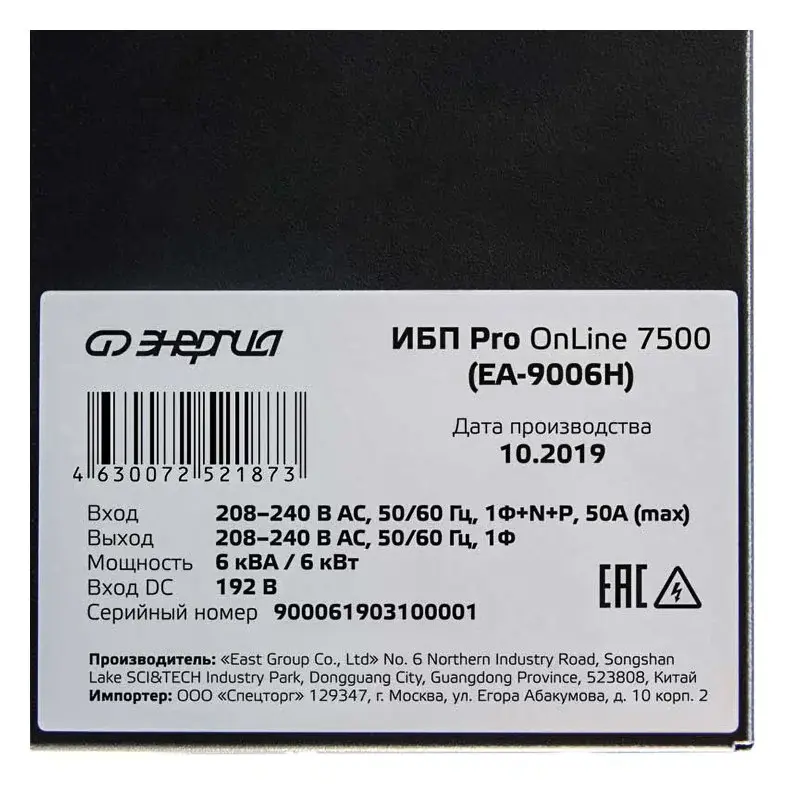 ЭНЕРГИЯ Pro OnLine 7500, EA-9006H, 192V напольный источник бесперебойного питания Е0201-0047