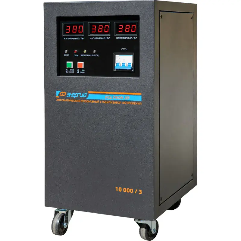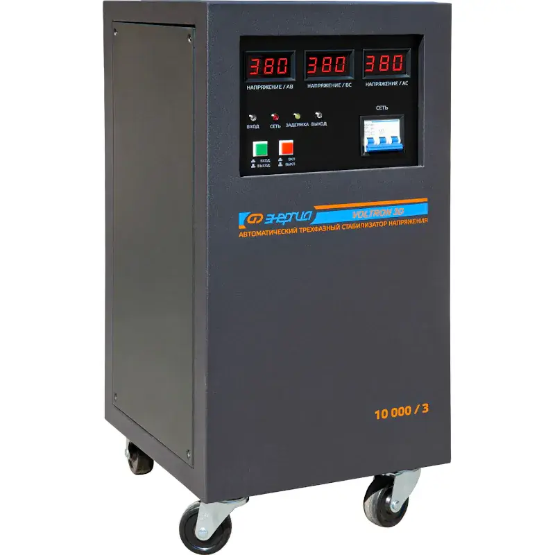 Трехфазный стабилизатор напряжения ЭНЕРГИЯ Voltron 3D 10000/3 обеспечивает подключенное оборудование качественной электрической энергией со стабильными уровнями фазного и линейного напряжения. Максимальная полная мощность нагрузки в длительном режиме составляет 10000 ВА. Благодаря электронной системе управления КПД устройства достигает 98 %. Допускается эксплуатация в температурном диапазоне от -5 до +40_С.