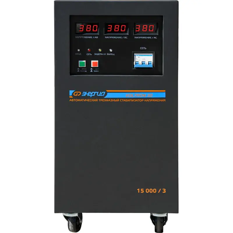 Трехфазный стабилизатор напряжения ЭНЕРГИЯ Voltron 3D 15000/3 обеспечивает подключенное оборудование качественной электроэнергией со стабильными уровнями фазного и линейного напряжения. Максимальная полная мощность нагрузки в длительном режиме составляет 15000 ВА. Благодаря электронной системе управления КПД устройства достигает 98 %. Допускается эксплуатация в температурном диапазоне от -5 до +40_С.