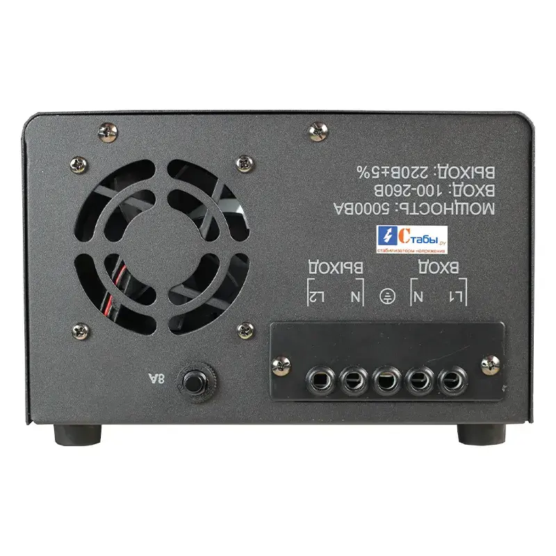 Конструкция состоит из трех стабилизаторов напряжения Voltron (5%) и общего блока контроля фаз (модуль БКС), который позволяет с помощью переключения выбрать трехфазный или однофазный режим работы и обеспечивает высокую степень защиты от аварийных ситуаций как во входной, так и в выходной сети.
