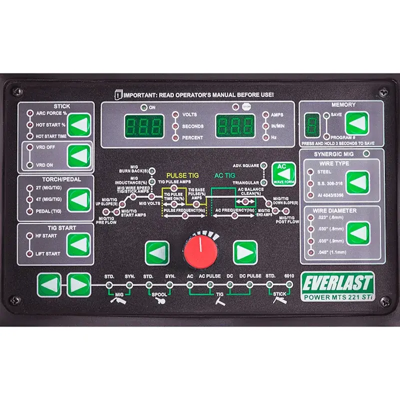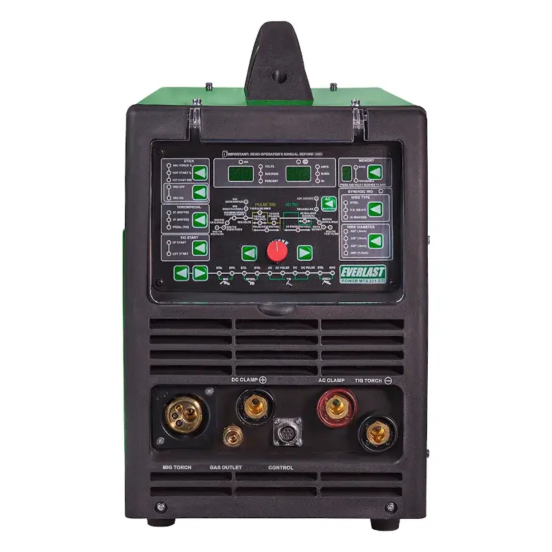 Инверторный полуавтомат EVERLAST PowerMTS 221STI - первая линейка продуктов в отрасли, в которой реализована функция MIG / AC и DC TIG и функция MMA в компактном формате с закрытым, автономным механизмом подачи проволоки, готовым сделать все, что вам нужно.