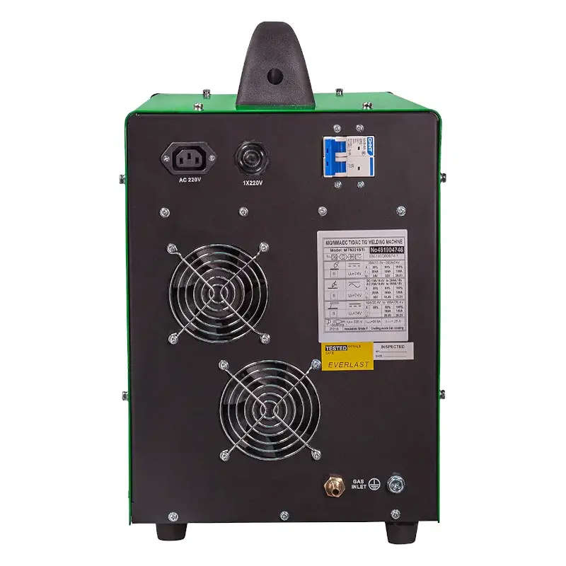 Для сварки TIG не требуется никаких специальных приспособлений или оборудования. Горелка TIG не нуждается в ручном газовом клапане, потому что поток газа регулируется автоматически и программируется на панели как для предварительного, так и для последующего потока.