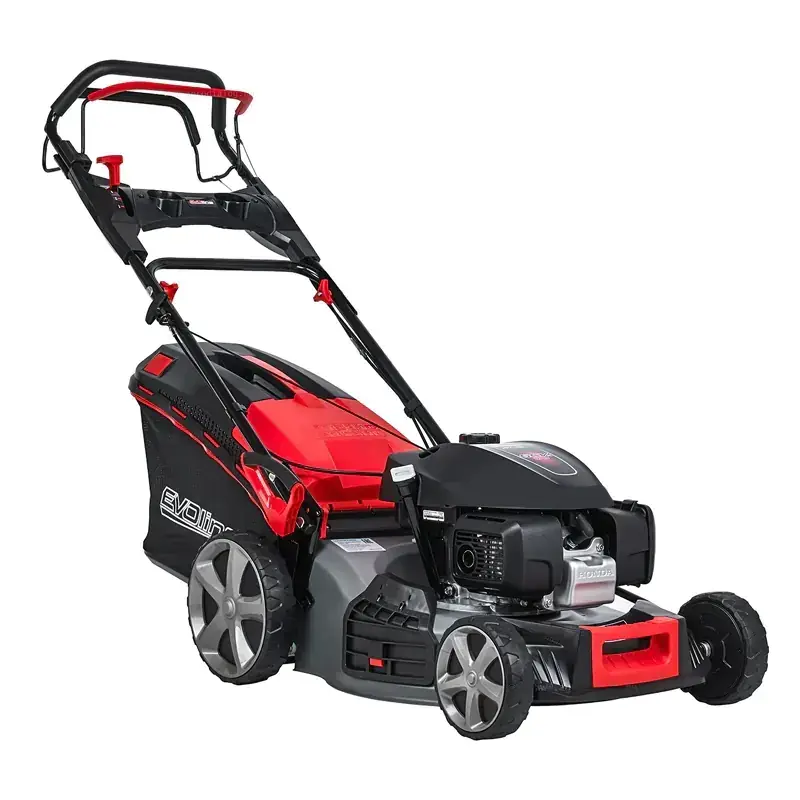 Модель оcнащена высокоэффективным 4-тактным одноцилиндровым двигателем внутреннего сгорания Honda GCV170 (Япония), съемным травосборником, фронтальным бампером, дугообразной ведущей рукояткой и 4 колесами.