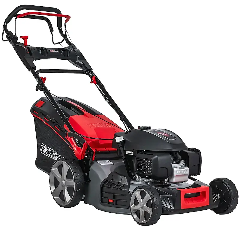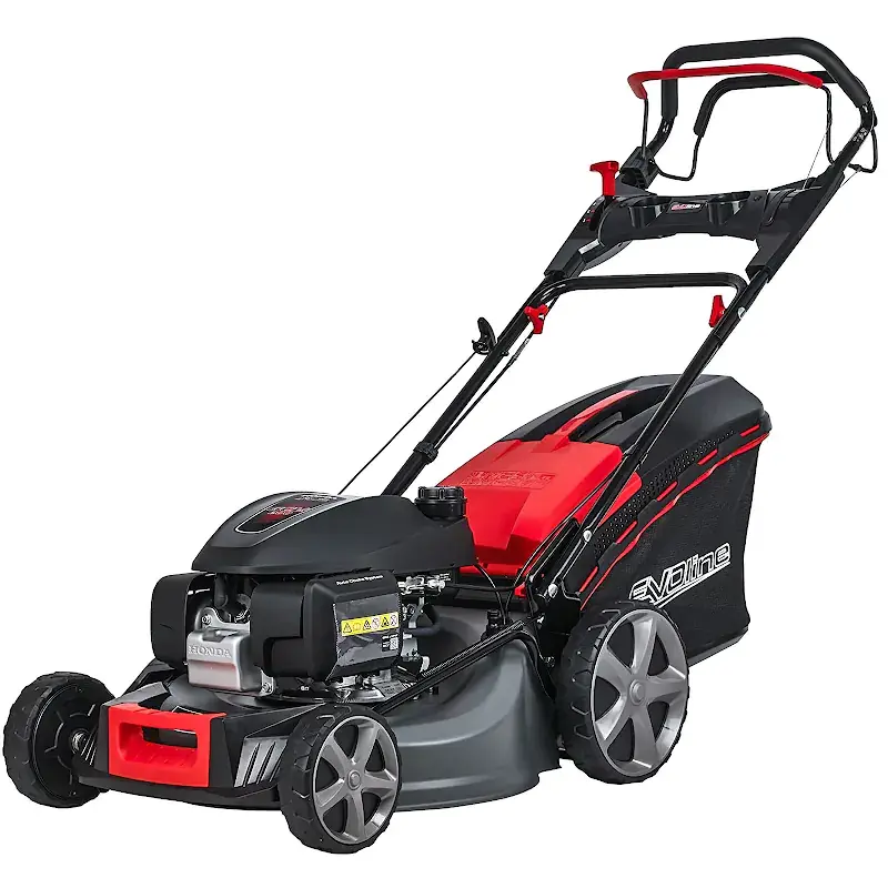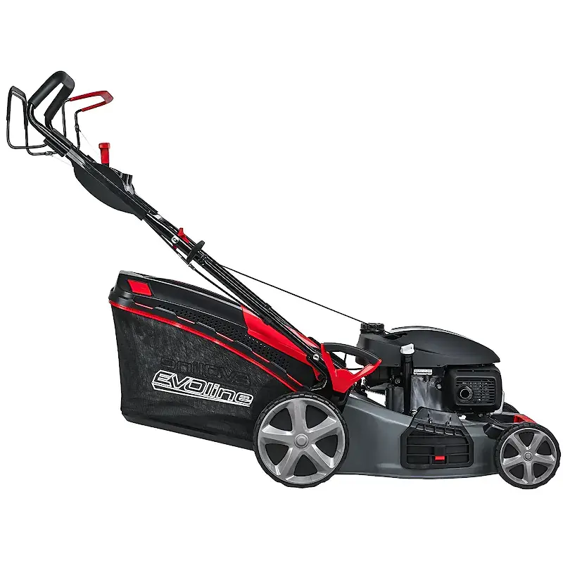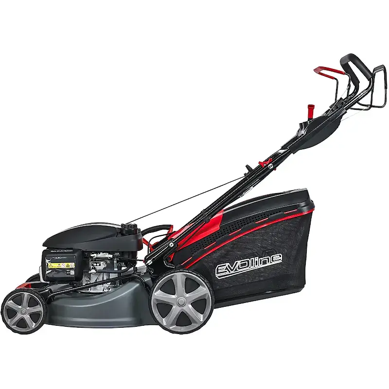 - Бензиновая газонкосилка EVOline LMG 53 CVH обладает привлекательным дизайном и простотой использования, что делает её идеальным помощником в саду.