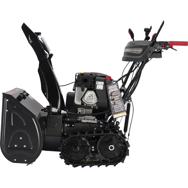 Модель EVOline SBG690TBE имеет богатую стандартную комплектацию: LED-фару, подогрев рукояток управления, легкий запуск двигателя от розетки 220В, а также оснащен такими функциями, как: отключение блокировки дифференциала с помощью курков и управление снегоуборочной машиной одной рукой.