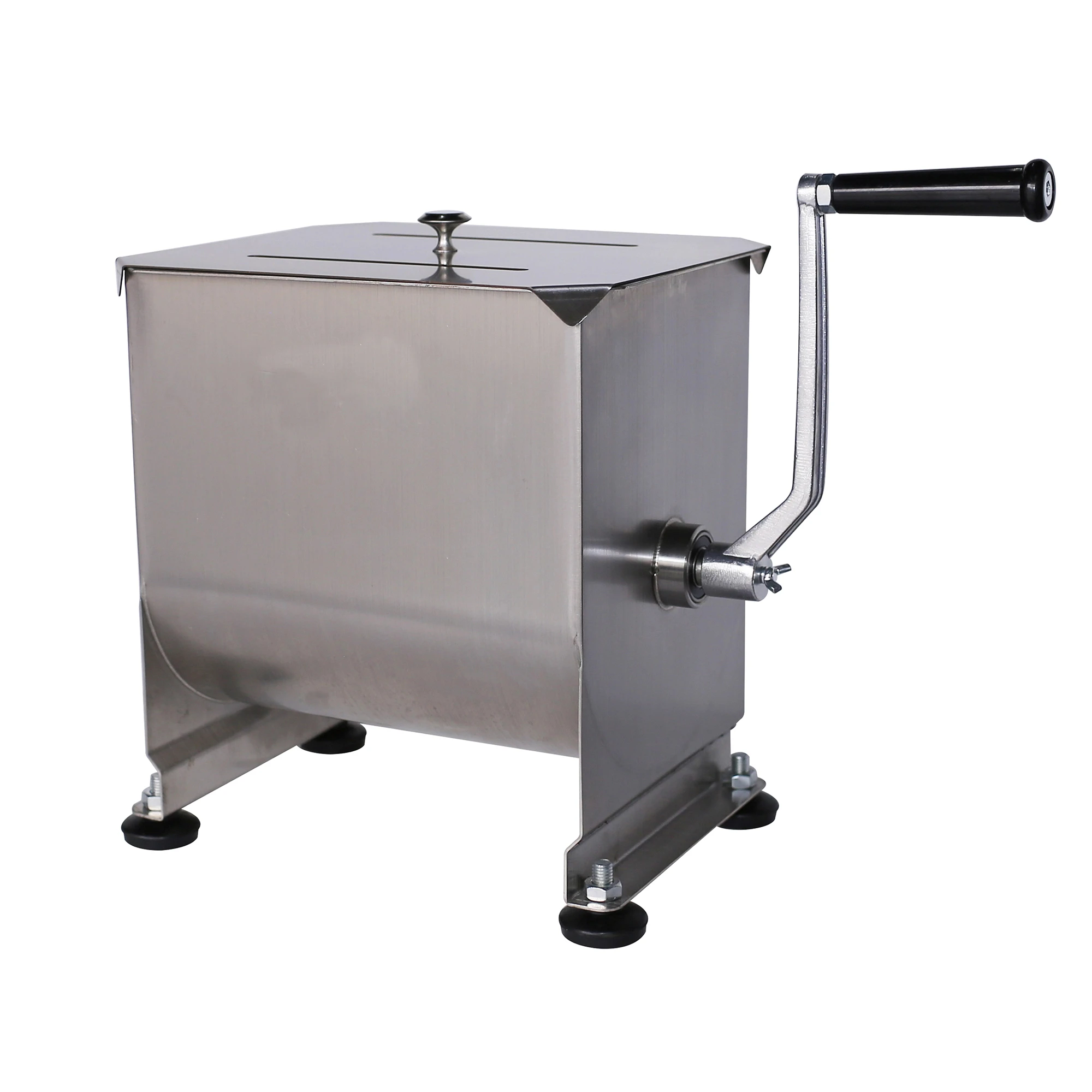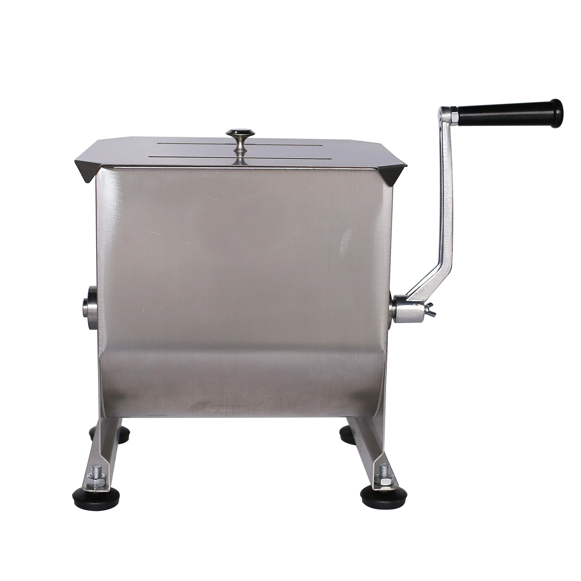 Фаршемешалка Eksi EMM-10 ручн. - это профессиональная фаршемешалка, оснащенная ручным приводом. Особенностью устройства является то, что оно устанавливается прямо на стол, а потому не требует обустройства дополнительного места. Этот механический аппарат с успехом применяется на предприятиях общественного питания и в местах торговли. Объем стальной нержавеющей дежи составляет 10 литров, что позволяет перерабатывать большое количество продукта. При этом максимальная загрузка фаршемеса не должна превышать 7,5 кг. Он предназначен для оперативного приготовления овощного и мясного фарша и оснащен удобной ручкой для перемешивания. Устройство способно в кратчайшие сроки перемешать разный фарш до однородной консистенции. Фаршемешалка также подходит для перемешивания творожной массы и овощных смесей.