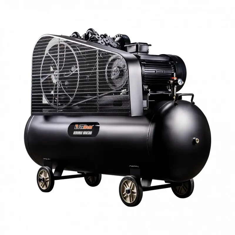 Масляный ременной компрессор FoxWeld AEROMAX 1050/300 используется для сжатия атмосферного воздуха и подачи в качестве энергоносителя для пневмоприводов и пневмооборудования. Профессиональный прибор с производительностью 1050 л/мин и давлением до 12,5 бар применяется во время строительных и автослесарных работ, в производственных цехах и шиномонтажных мастерских.