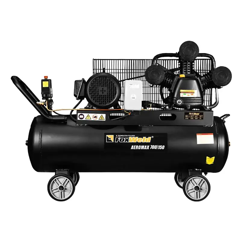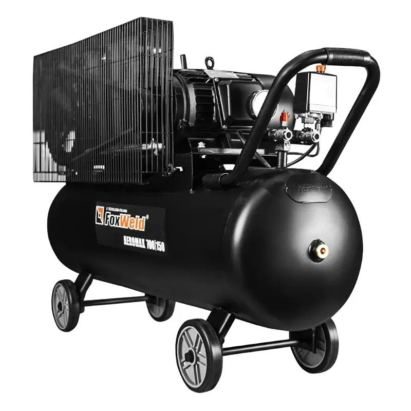 Масляный ременной компрессор FoxWeld AEROMAX 700/150 используется для сжатия атмосферного воздуха и подачи в качестве энергоносителя для пневмоприводов и пневмооборудования. Производительности 700 л/мин и давления до 8 бар достаточно для обеспечения работы плазмореза, отбойного молотка, гайковерта с высоким крутящим моментом, хоппер-ковша и других мощных пневмоинструментов.
