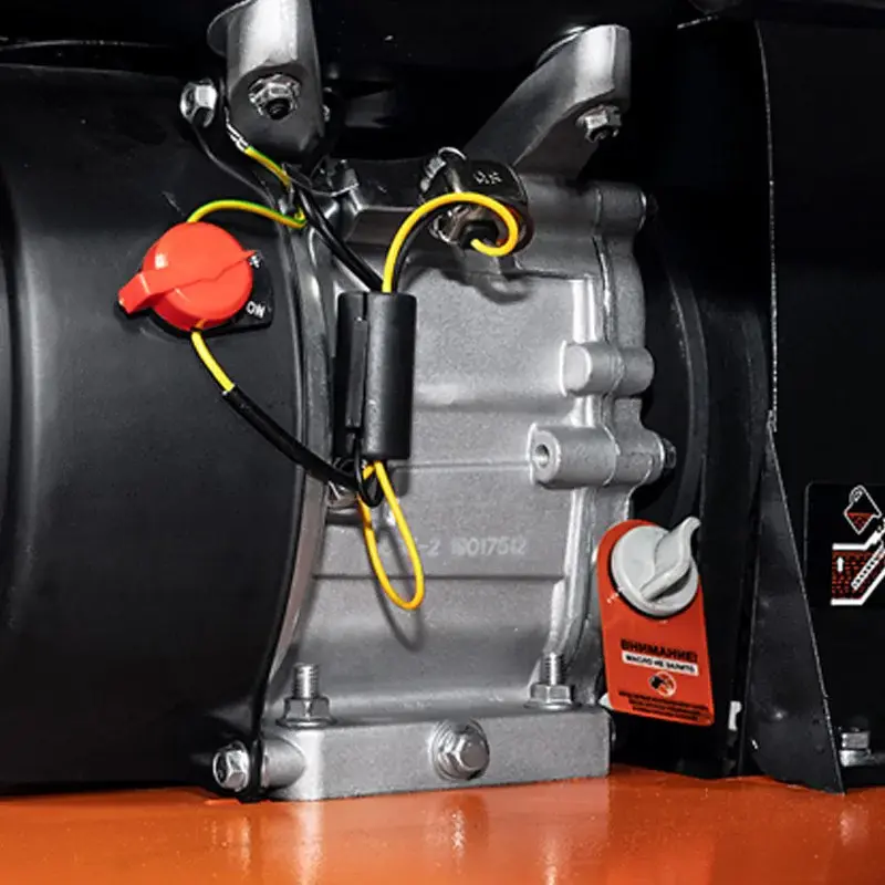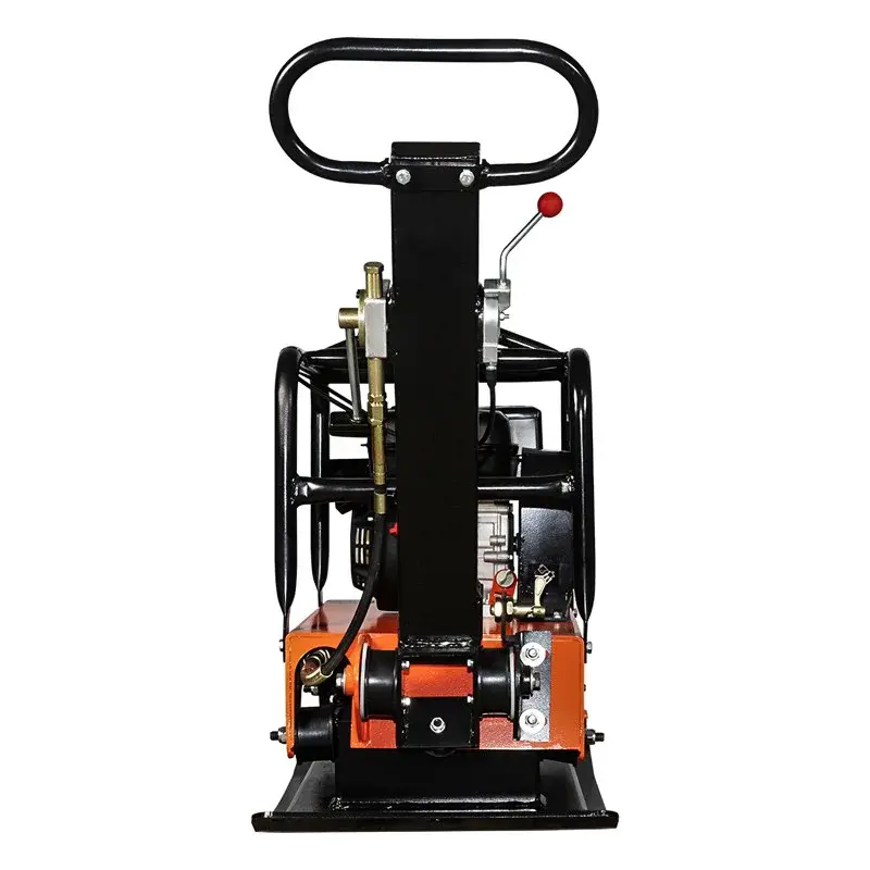 Виброузел с приводом от бензинового ДВС передаёт ударный и вращательный момент на основание плиты, воздействующей своим весом на рабочую поверхность.