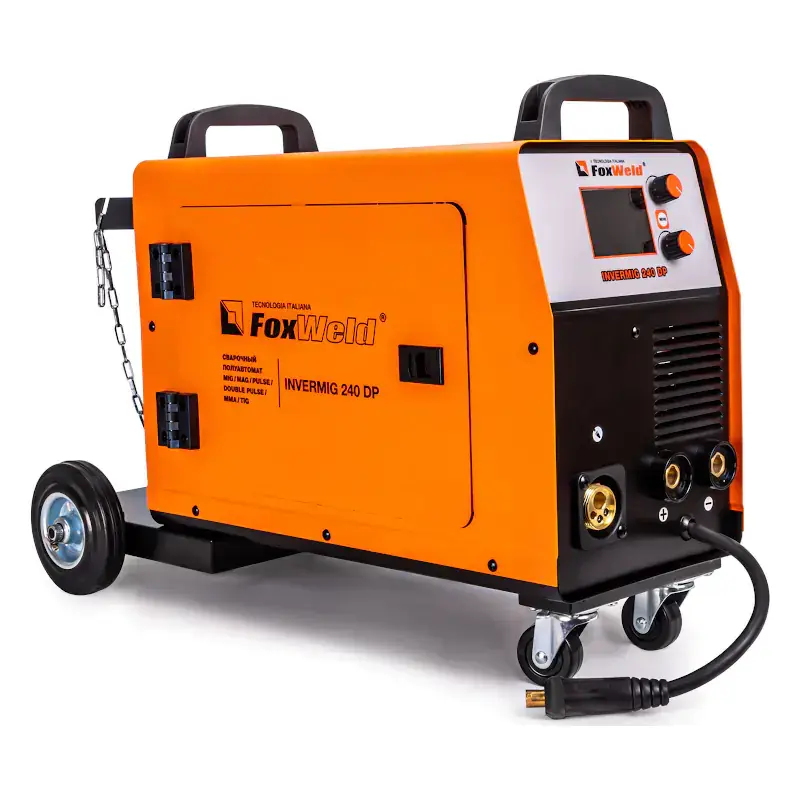 Сварочный полуавтомат FoxWeld INVERMIG 240 DP является уникальным устройством, воплотившем в себе очень большое количество функций и опций, которые позволяют профессионально и качественно, осуществлять процесс сварки в различных режимах и с разными настройками. Основная функция модели сварка процессом MIG/MAG: максимальная сила тока в 240 Ампер позволяет работать с проволокой диаметром до 1,2 мм. В механизм подачи проволоки можно установить катушки диаметрами, как D100, так и D200.