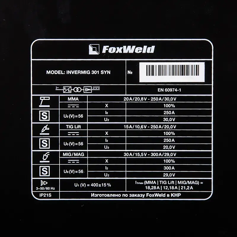 Сварочный полуавтомат FoxWeld INVERMIG 301 SYN специально предназначен для интенсивной эксплуатации в промышленных условиях. Благодаря 100%-ной продолжительности включения с оборудованием можно работать продолжительное время без остановки. Инверторный аппарат мощностью 8,7 кВт работает от трехфазной сети. Ток сварки регулируется в диапазоне 20–300 А. Синергетическая технология обеспечивает автоматическую настройку параметров сварочного процесса. Устройство позволяет сваривать конструкции из алюминия, легированной и низкоуглеродистой стали покрытыми электродами диаметром 1,6–5,0 мм или проволокой 0,8–1,2 мм в полуавтоматическом режиме. Механизм подачи рассчитан на катушки весом 5 и 15 кг.