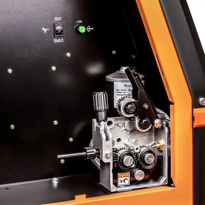Встроенная функция горячего старта облегчает начало сварки. В случае неудачного розжига напряжение сварочного тока мгновенно снижается во избежание залипания электрода. Благодаря функции VRD со сварочным аппаратом FoxWeld INVERMIG 351 SYN можно работать при повышенной влажности. Инверторная технология обеспечивает стабильную дугу и удобство сварки. Механизм подачи с четырьмя ведущими роликами подает проволоку в область сварки без проскальзывания и рывков.
