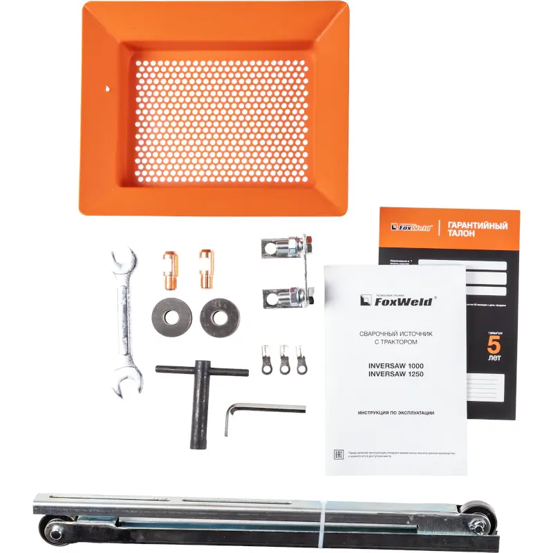 Сварочный трактор в комплекте с кабелем управления, сварочным и обратным кабелем, комплект наконечников и роликов подачи проволоки, упоры для сварки в лодочку и другие сопутствующие и расходные материалы позволяют быстро приступить к работе.