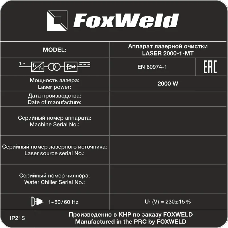 - Мощность лазера 2000 Вт