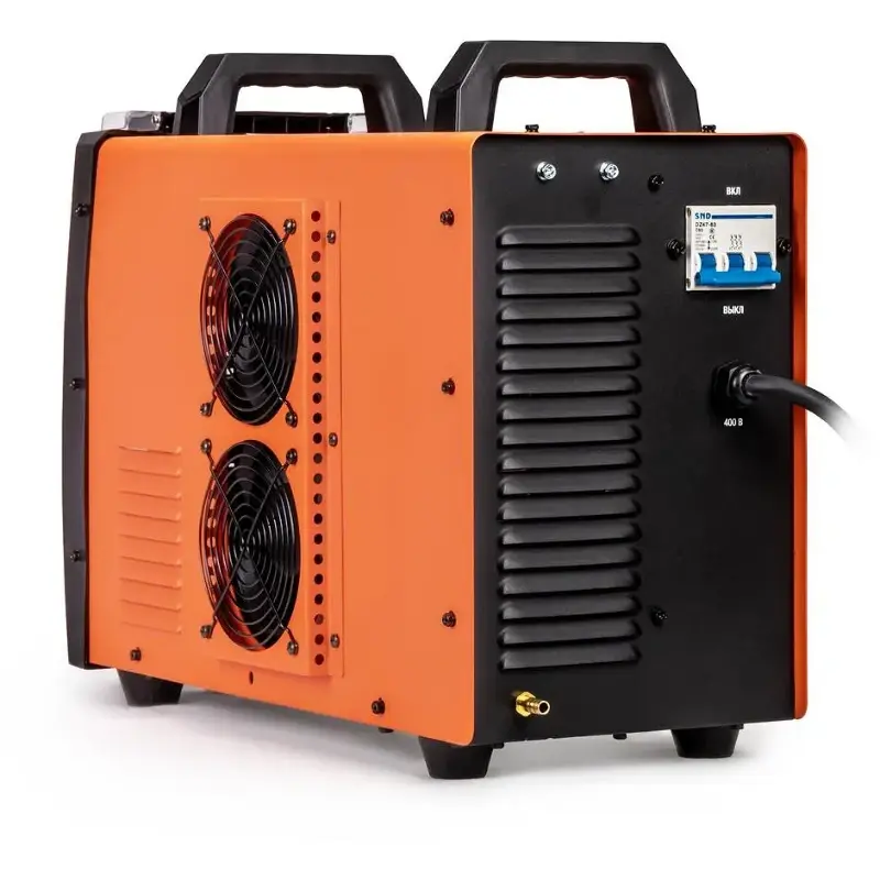- 2 цифровых дисплея: один показывает значения тока и дополнительных параметров резки, второй – давление сжатого воздуха
