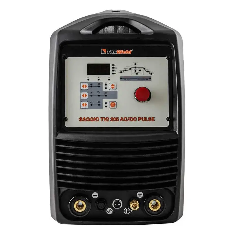 Аппарат аргонодуговой сварки FoxWeld SAGGIO TIG 205 AC/DC Pulse – профессиональное устройство для работы с металлами в режимах ММА, TIG или импульсном. Сварочный ток плавно настраивается вручную от 5 до 200 А.