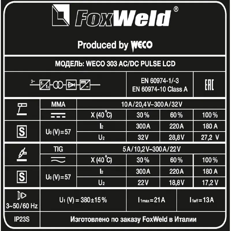 Аппараты FoxWeld серии WECO собрали в себе весь опыт разработки и эксплуатации профессионального сварочного оборудования, начиная с 1998 г. Все аппараты Foxweld линейки WECO разрабатываются и производятся в Италии.