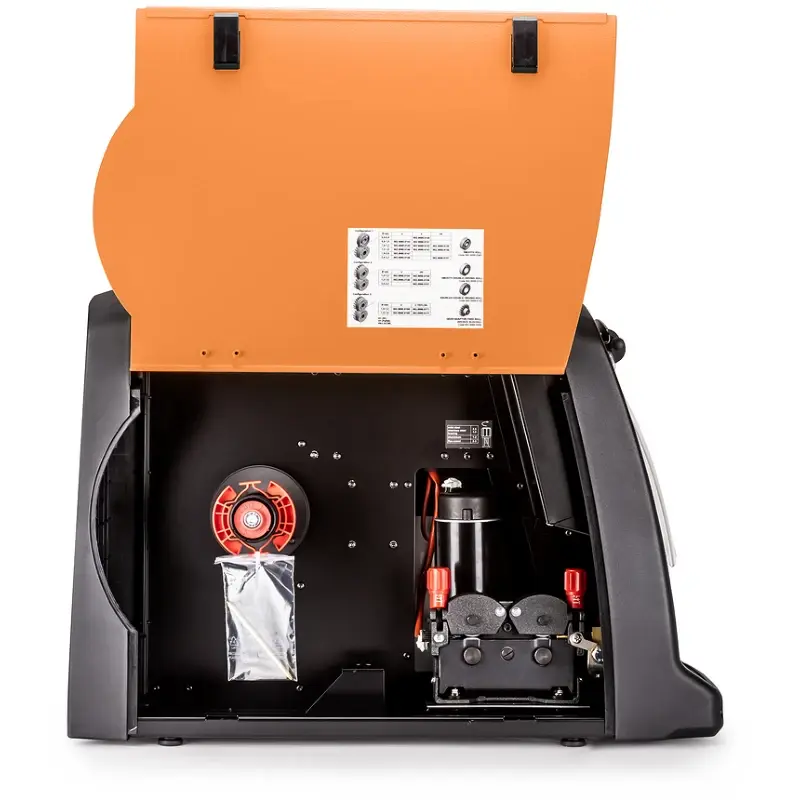 Механизм подачи проволоки FOXWELD WECO WF-204 был разработан для обеспечения сварщиков легким и мобильным сварочным аппаратом, который благодаря уменьшенному объему можно легко перемещать в любом месте, в том числе при проведении сварочных работ в труднодоступных местах. Перемещение механизма подачи (МП) также облегчается благодаря эргономичной верхней ручке, которая обеспечивает сбалансированный захват. Надёжное крепление кабеля управления и кабеля питания продлевает срок службы при возможном использовании различной длины кабель-пакета. Сварщик может поддерживать связь с источником питания на расстоянии до 50 метров. Предельно компактный и электрически изолированный МП с отсеком катушки защищён от пыли, металлических опилок и т.п. Защитный экран защищает переднюю панель от сварочных брызг и предотвращает от повреждения. Светодиодная подсветка в отсеке подачи проволоки облегчает установку и замену роликов даже в плохо освещённых местах. Отсек для установки катушки проволоки оснащен смотровым окном, позволяющим сварщику контролировать количество проволоки, оставшейся в бухте. Система из 4 ведущих роликов (опция) обеспечивает плавную подачу проволоки, особенно при использовании материалов таких как алюминиевые и медные сплавы. Четырех-роликовый механизм протяжки проволоки с оптическим датчиком обеспечивает более эффективную и точную подачу проволоки.