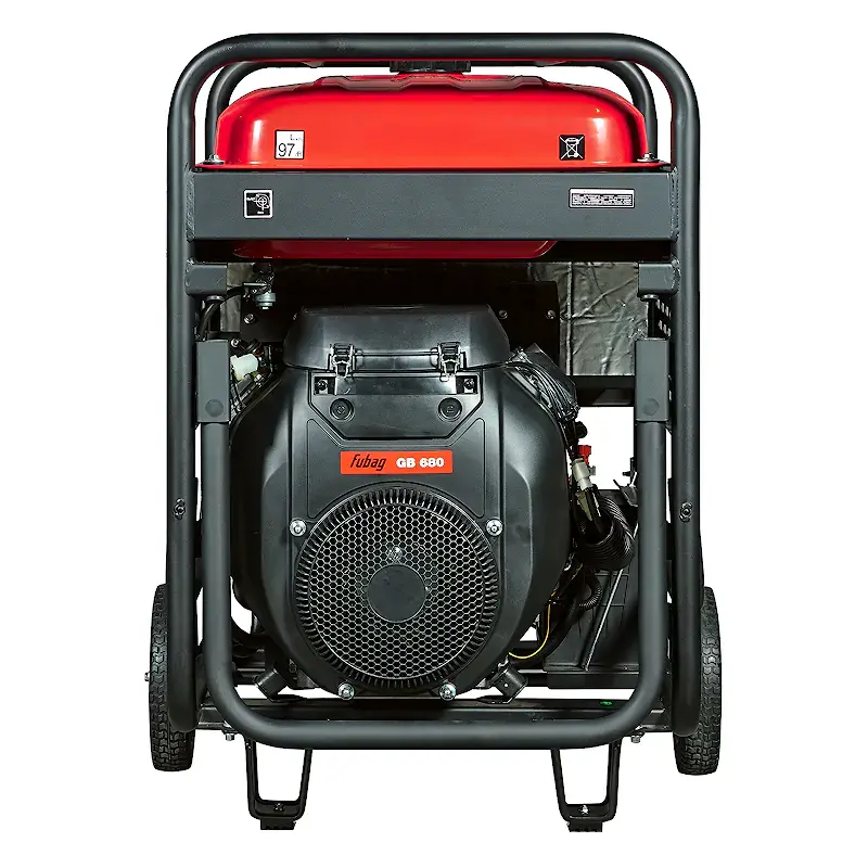 Бензиновый генератор FUBAG оснащен мощным двигателем объемом 679 см3, позволяет подключать как однофазные потребители общей мощностью до 3,3 кВт, так и трехфазные суммарной мощностью до 10 кВт. Для подключения оборудования и приборов предусмотрены розетки 220 В/16 А, 380 В/16 А и силовые клеммы на 380 В для особо мощных потребителей.