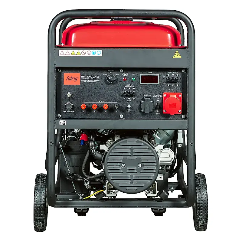 Бензиновый генератор Fubag BS 14000 DA ES – трехфазная модель с максимальной номинальной мощностью 12 кВт. Оснащена коннектором автоматики и электрическим стартером. Для простого перемещения по рабочей площадке генератор оснащен транспортировочными колесами и рукояткой.