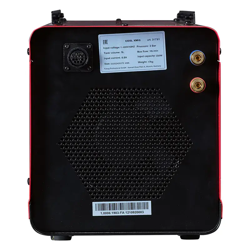 Блок жидкостного охлаждения Cool XMIG FUBAG создан для эффективного отвода тепла от сварочной горелки во время работы на высоких токах. Предотвращает перегрев и позволяет работать без вынужденных перерывов, снижает скорость износа аксессуаров.