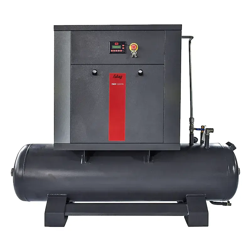 Винтовой компрессор FUBAG FSKR 7.5-8/270 представляет собой универсальное решение для получения технически сухого сжатого воздуха. Основные узлы компрессора доступны для аудита и замены (воздушный и масляный фильтры, приводной ремень).