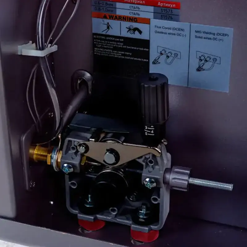 Для ручной сварки ММА можно использовать рутиловые и целлюлозные электроды, а в режиме MIG/MAG — твердую или флюсовую проволоку. Наличие синергетической функции значительно упрощает работу с аппаратом. Перед началом процесса достаточно указать материал, диаметр сварочной проволоки и защитный газ. Устройство самостоятельно подберет необходимые значения сварочного тока и напряжения дуги.