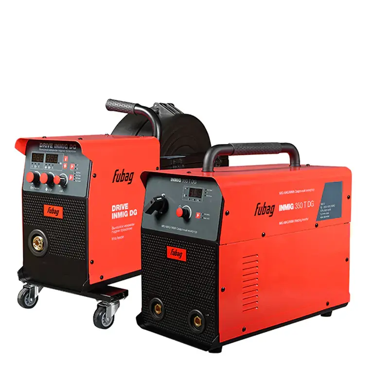 INMIG 350 T DG НАКС - трехфазный сварочный полуавтомат Fubag с выносным 4-х роликовым механизмом подачи проволоки DRIVE INMIG для сварки в режиме MIG-MAG. и порошковой самозащитной проволокой. Полуавтомат с воздушным охлаждением горелки предназначен для выполнения различных сварочных работ. Подающий механизм DRIVE INMIG обеспечивает возможность работы на удалении от источника и имеет цифровой дисплей. Сварочный инвертор позволяет регулировать скорость подачи проволоки, сварочный ток, индуктивность и напряжения дуги. Сварочный полуавтомат обладает легким управлением всеми важными параметрами сварки на лицевой панели подающего устройства с цифровой индикацией параметров, высокой производительностью и способностью проводить сварочные работы широкого спектра.