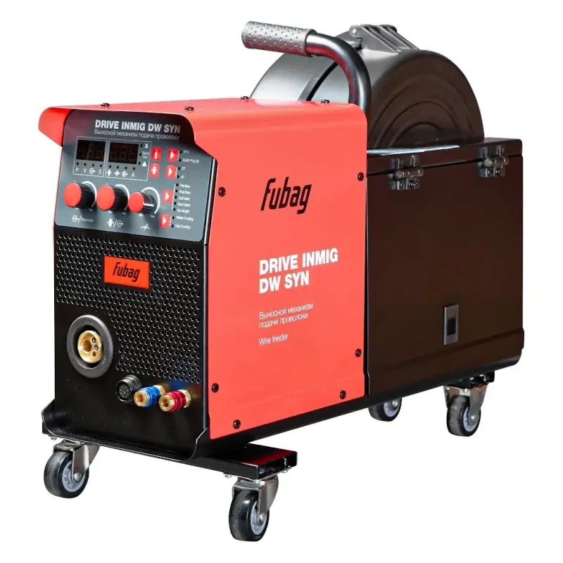 Сварочный полуавтомат инвертор FUBAG INMIG 500T DW SYN 31406 31406.1 предназначен для сварки в режимах MIG-MAG, MMA, TIG LIFT с газом и без газа. Аппарат оснащен модулем жидкостного охлаждения специальной горелки, а также выносным 4-х роликовым механизмом подачи проволоки DRIVE INMIG.