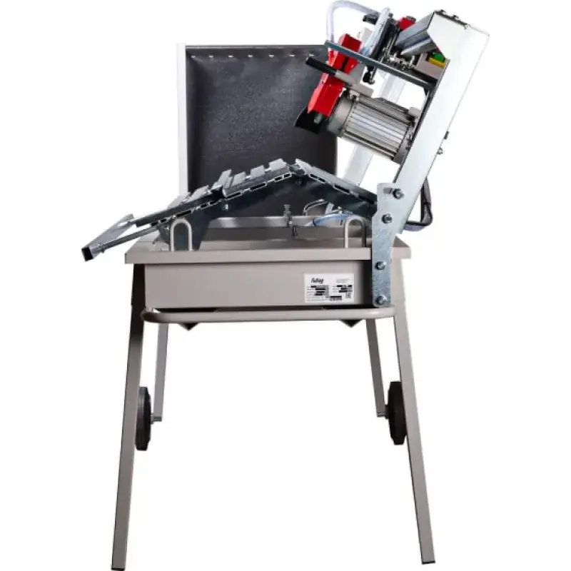 Электрический станок для резки плитки и камня Fubag PKH 35 A 120 M имеет водяное охлаждение, которое обеспечивает непрерывную работу без перегрева. Двигатель защищен от самопроизвольного пуска. Стол имеет возможность наклона, что позволяет выполнять фигурные пропилы. Защитный кожух диска делает работу безопасной для оператора.