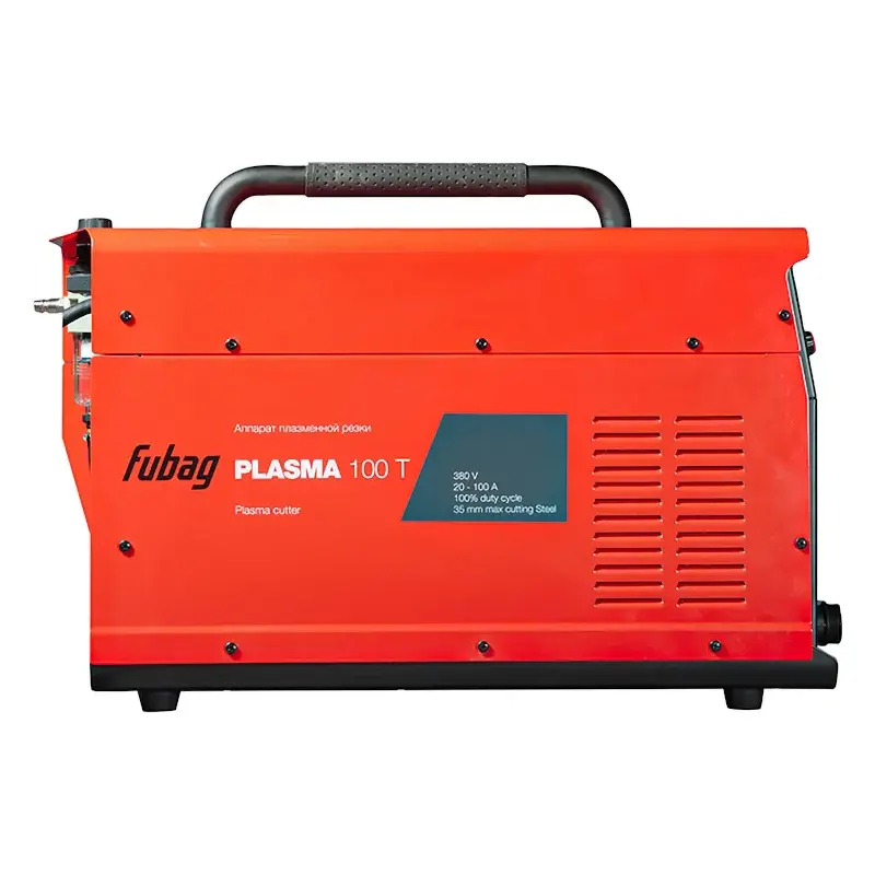 FUBAG PLASMA 100 T - мощный инверторный аппарат для воздушно-плазменной резки с пневматическим поджигом и с высокой производительностью. Обеспечивает максимальную толщину реза углеродистой стали до 35 мм. В комплект входит плазморез FB P100 6 м, кабель заземления (4 м.)