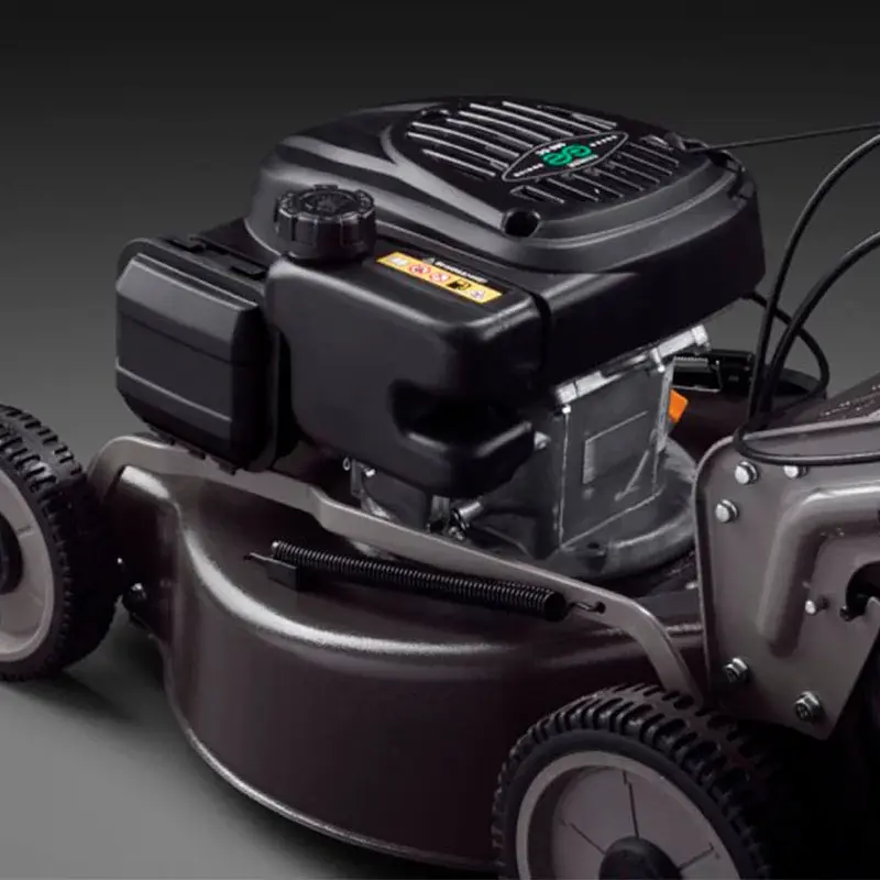 Бензогазонокосилка оснащена регулируемой рукояткой, соединённой с корпусом стальным кронштейном, позволяющим работать даже в условиях повышенных нагрузок. Благодаря удобному хвату управление устройством на неровной поверхности остаётся комфортным и эффективным.