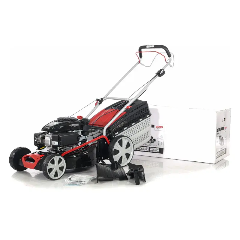 Машина предназначена для скашивания газонной травы на участках площадью до 1800 м2. Благодаря системе легкого запуска двигатель заводится ручным стартером с полуоборота. Пусковой трос можно закрепить с помощью специального фиксатора на рукоятке, чтобы не наклоняться к мотору. Самоходная бензиновая газонокосилка Geos движется с постоянной скоростью. Задние колеса большего диаметра, чем передние, улучшают проходимость, обеспечивают маневренность машины. Резиновые протекторы не оставляют заметных следов на газоне.