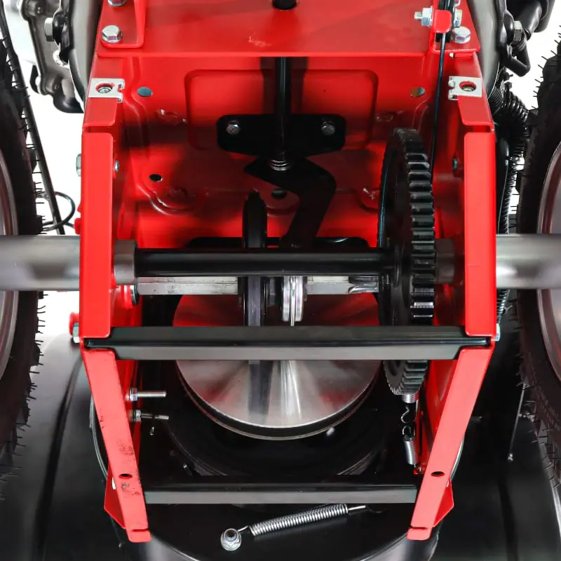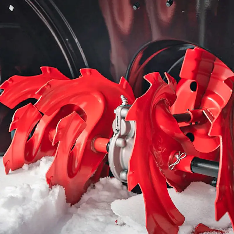 Бензиновый снегоуборщик имеет специальный зимний двигатель, который легко запускается при минусовых температурах. Также он оснащен фарой и электростартером для удобства работы в темное время суток.
