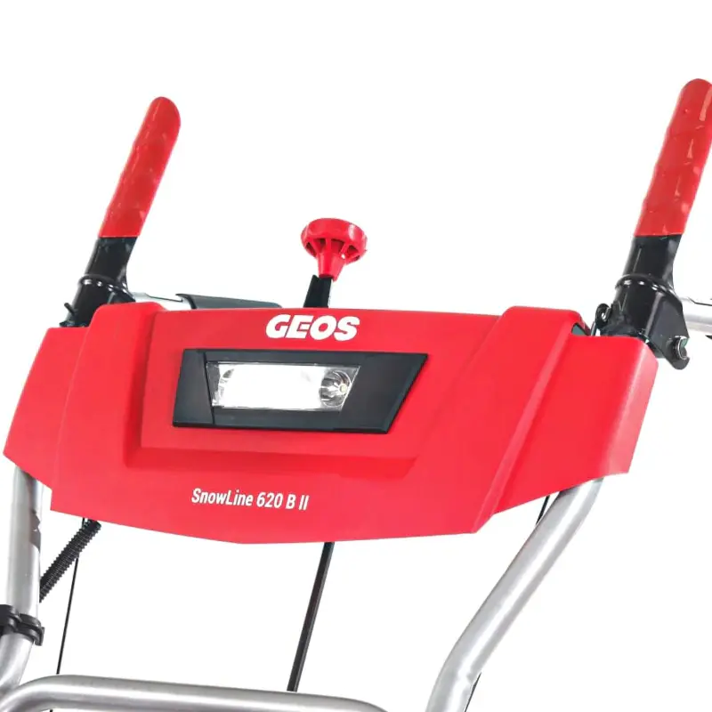 Снегоуборщик GEOS Comfort SnowLine 620 B ll имеет ширину захвата снега 62 см и высоту забора снега 51 см. Он может выбрасывать снег на расстояние до 15 метров. Имеет двухступенчатую систему очистки снега, которая состоит из рельефного шнека и турбины.