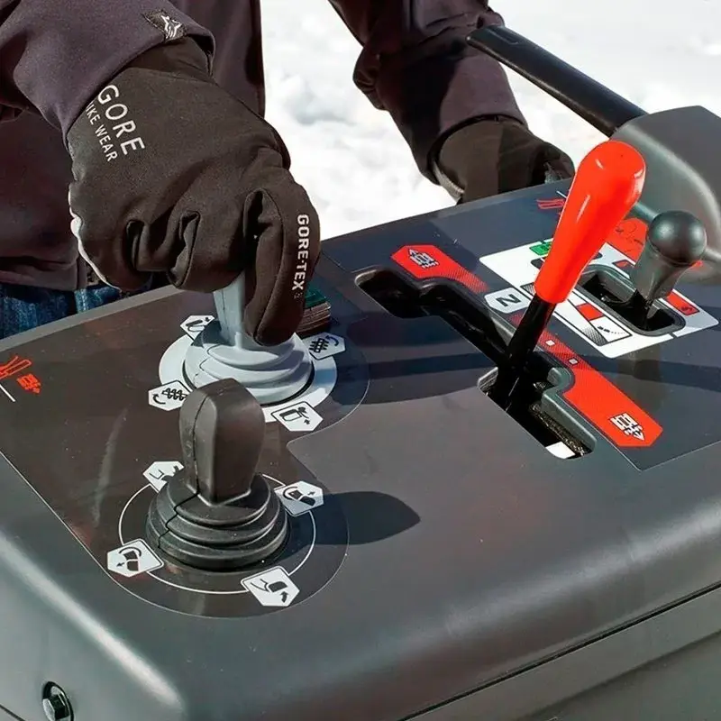 - Механизм сброса. Шнек возвращается в обычное положение для комфортной обработки большого слоя снега и под уклоном.