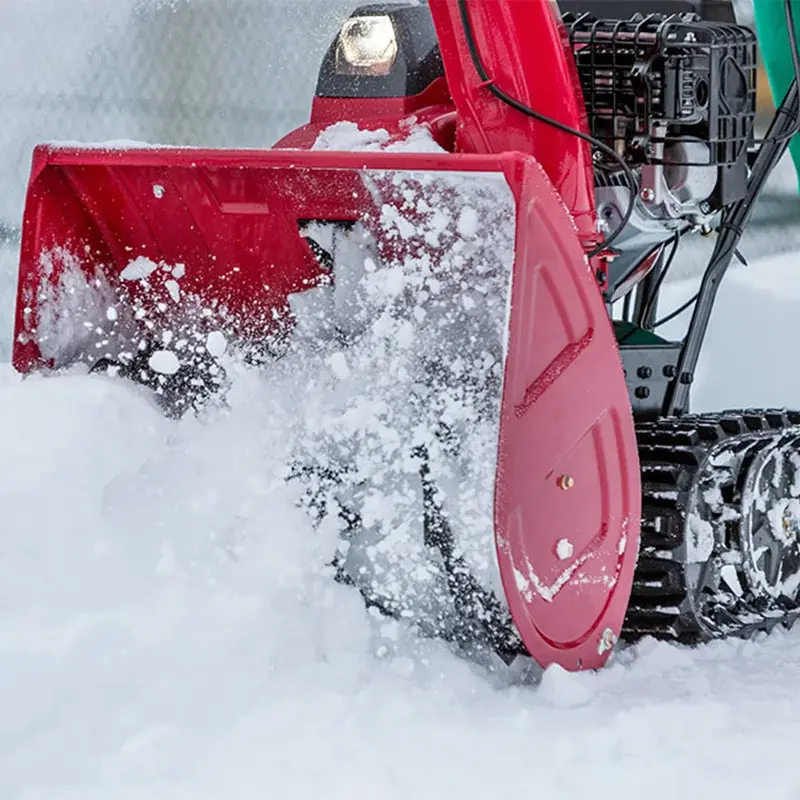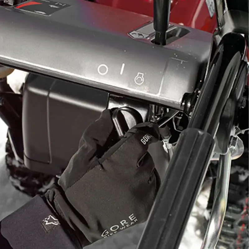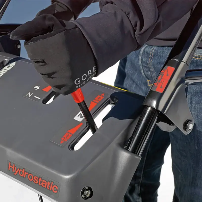 - Электрическое управление патрубком выброса снега с возможностью регулировать направление выброса с помощью джойстика на панели управления;